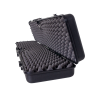 O interior da maleta é revestido com espuma ondulada tipo “casca de ovo” de alta densidade. Essa espuma não só amortece o armamento, prevenindo riscos e danos, como também o mantém firmemente no lugar, evitando deslocamentos indesejados durante o transporte.