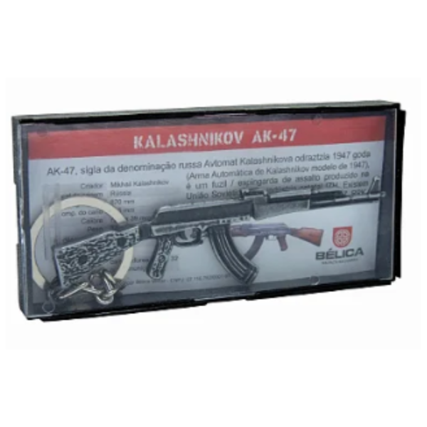 Cada detalhe deste chaveiro de coleção foi cuidadosamente reproduzido para capturar a essência do AK-47. O acabamento em prata velho confere um visual robusto e autêntico, perfeito para quem busca um acessório diferenciado.