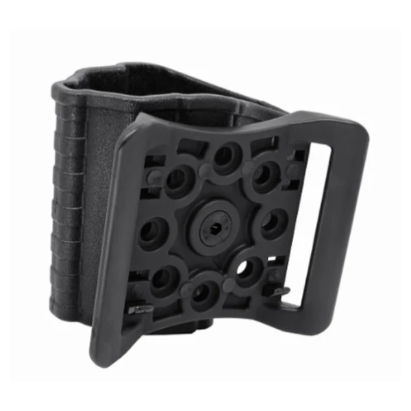 Catraca rotativa que possibilita a rotação do Coldre para ajuste do ângulo e maior conforto no manuseio do equipamento.