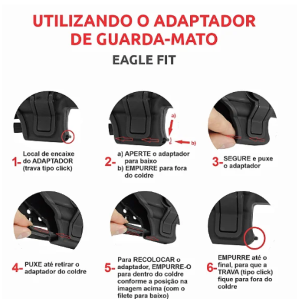 A catraca serve também para fixar o Coldre em outras plataformas Bélica compatíveis.