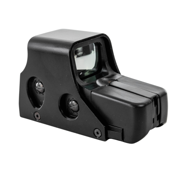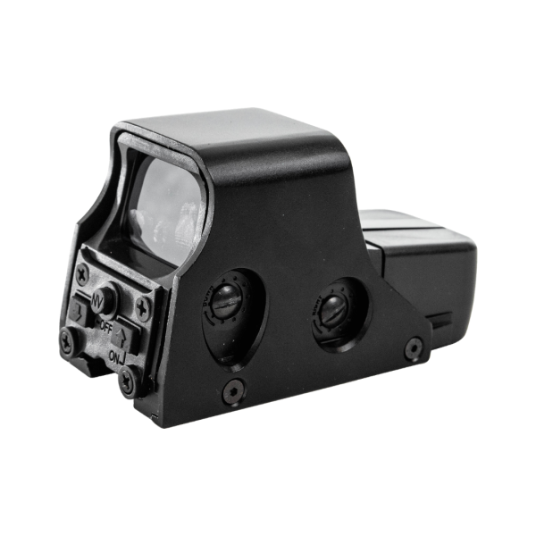 Este é um dos modelos de mira holográfica mais utilizados no mundo graças à sua capacidade de proporcionar tiros mais rápidos e intuitivos. Seu design permite visar com ambos os olhos abertos, garantindo melhor visão periférica, maior percepção do ambiente e excelente leitura de profundidade, tornando cada movimento muito mais eficiente durante a partida.